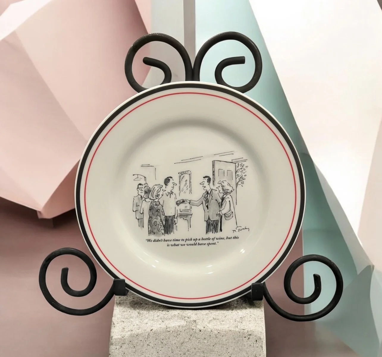 classic New Yorker cartoons, making them a functional yet decorative piece for entertaining.