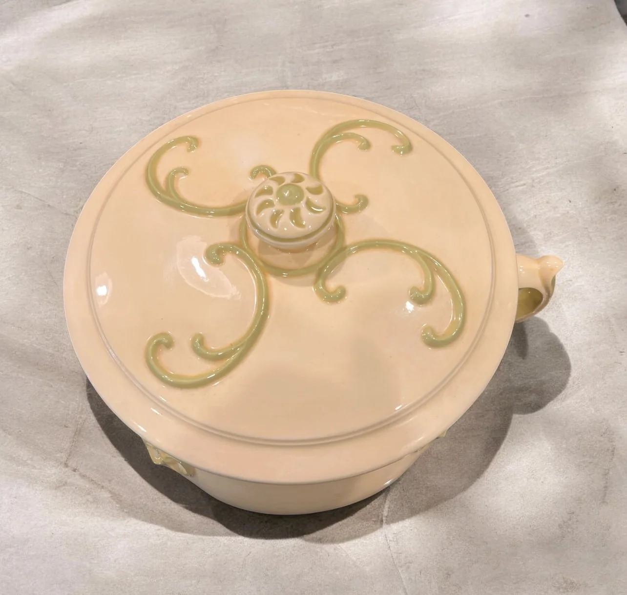 Arnel's Pottery was a ceramic company known for producing various pottery items, including decorative and functional pieces like chamber pots and pitcher/basin sets, often as ceramic molds for home crafters.